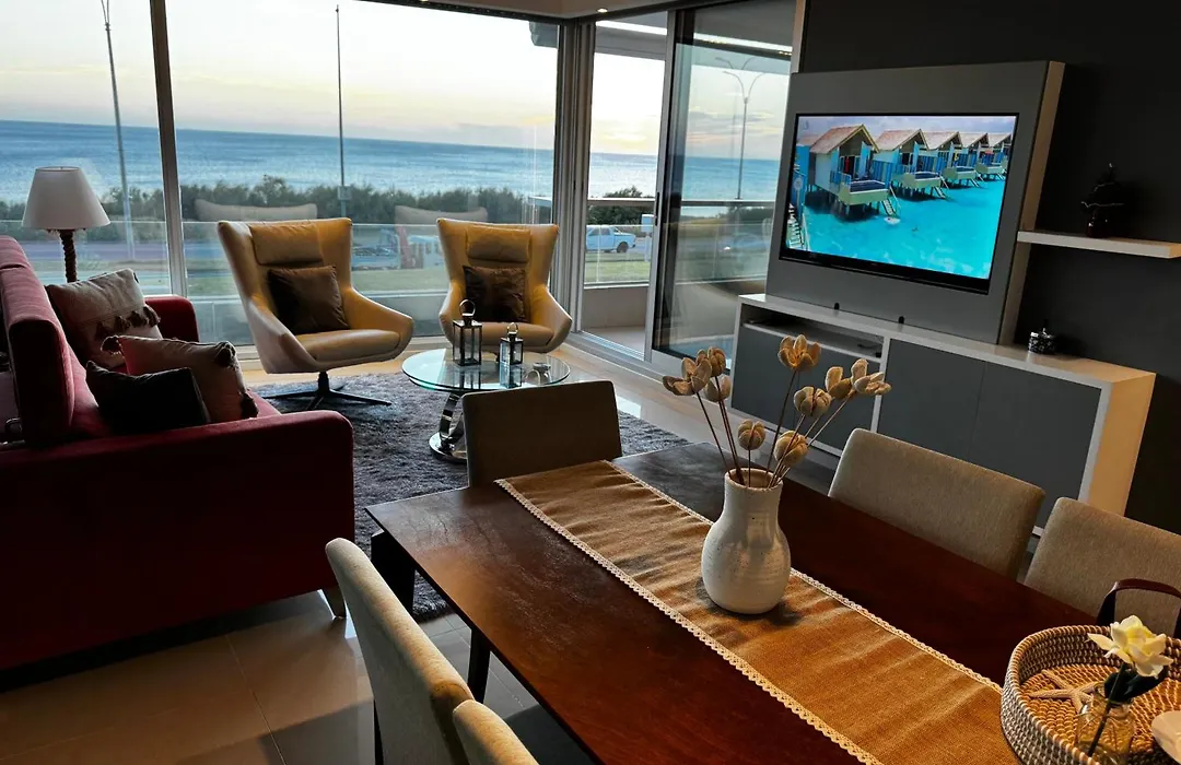 The beachfront 110 m² Mansa Boutique Lumiere Frente Al Mar 2 Dormitorios 3 Banos Cocina Definida 2 Balcones Cochera Y Amenities Un Verdadero Lujo apartment includes a sun terrace and is situated merely a 6-minute walk from Playa Las Delicias. The 3-bedroom accommodation boasts views of the garden and is within arm's reach of Playa Mansa.